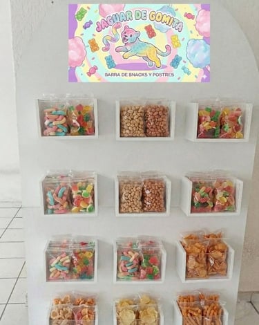 En Jaguar de Gomita, transformamos tus eventos en experiencias llenas de sabor y color con nuestras barras de snacks únicas en Villahermosa.